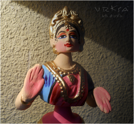 Thanjavur Thalaiyatti Bommai is simple pair of clay dancing dolls based on center of gravity. The doll with a heavy bottom and round shaped rocks on all sides but does not fall.These simple dolls are inexpensive and non-toxic. Art of Thanjavur in Tamil Nadu..